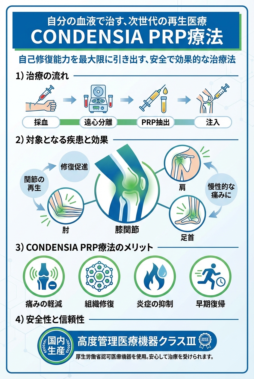 しかし、「手術をしたくない」「まだ手術をするほどではないが痛みが強い」という方に対し、次世代の保存治療として注目されているのがPRP療法です。
