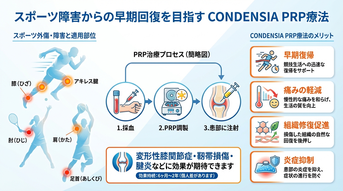スポーツによる急性外傷や慢性的なオーバーユース障害にも、PRP療法は高い治療効果が報告されています。