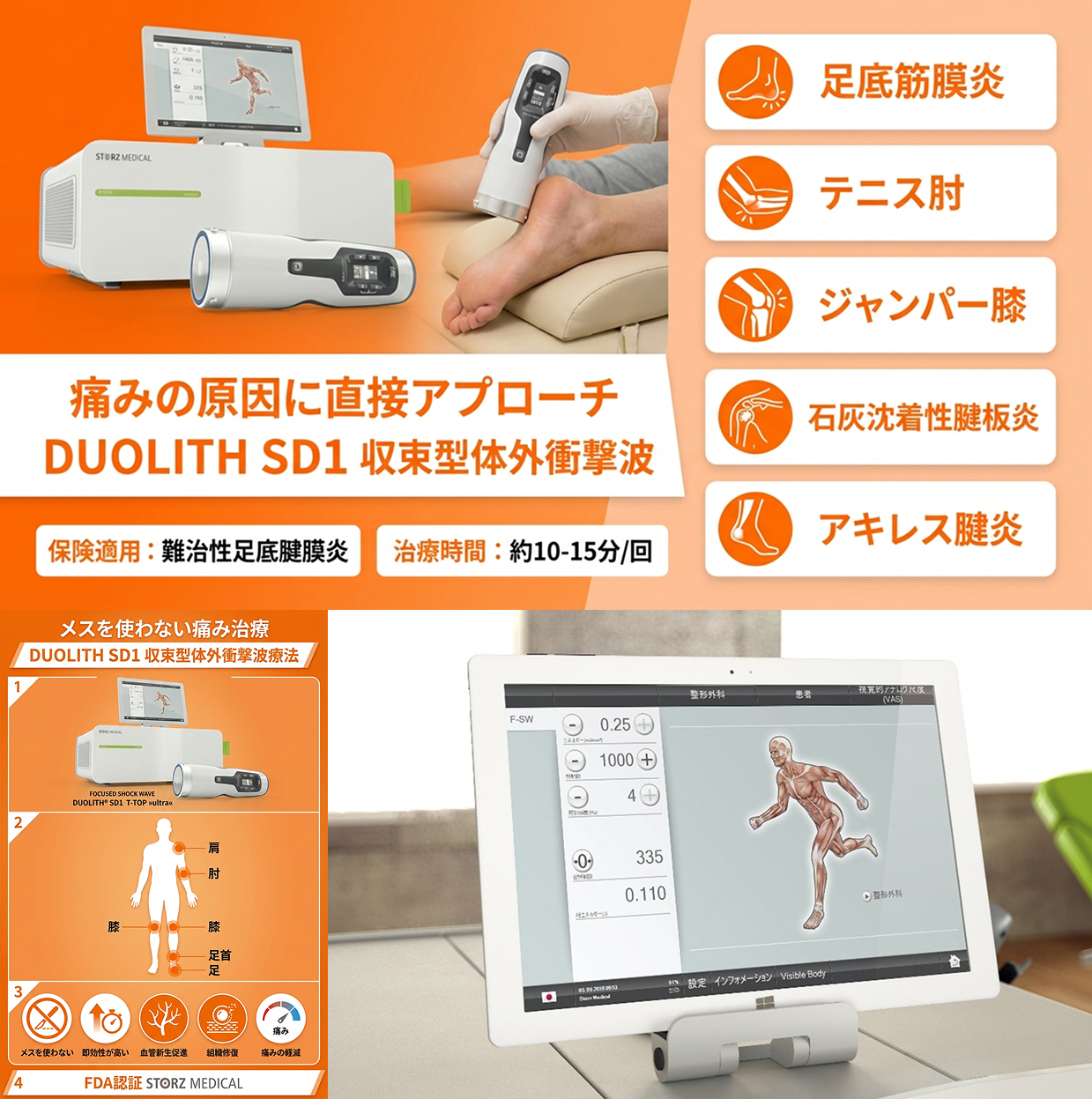 治療は皮膚の上から衝撃波を当てるだけのため、身体への負担が少なく、 慢性的な痛みの軽減に非常に有効です。
